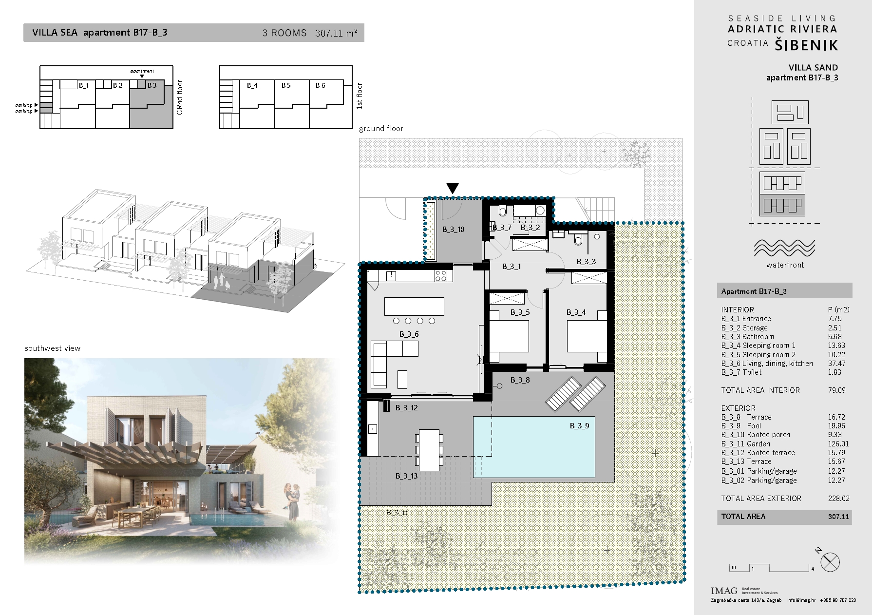 In the middle of the Mediterranean ambience, Dalmatian nature and crystal clear sea, our two beautiful villas, each with six modern apartments, spread over two floors. Three apartments are located on the ground floor, and three on the first floor. The apartments are designed and built with great care to ensure maximum comfort and practicality. The apartments on the ground floor have a spacious terrace with a swimming pool and greenery, ideal for relaxing and enjoying the peace and quiet of the surroundings, while the apartments on the first floor have beautiful terraces with a view of the blue Adriatic Sea, perfect for enjoying the sunset.